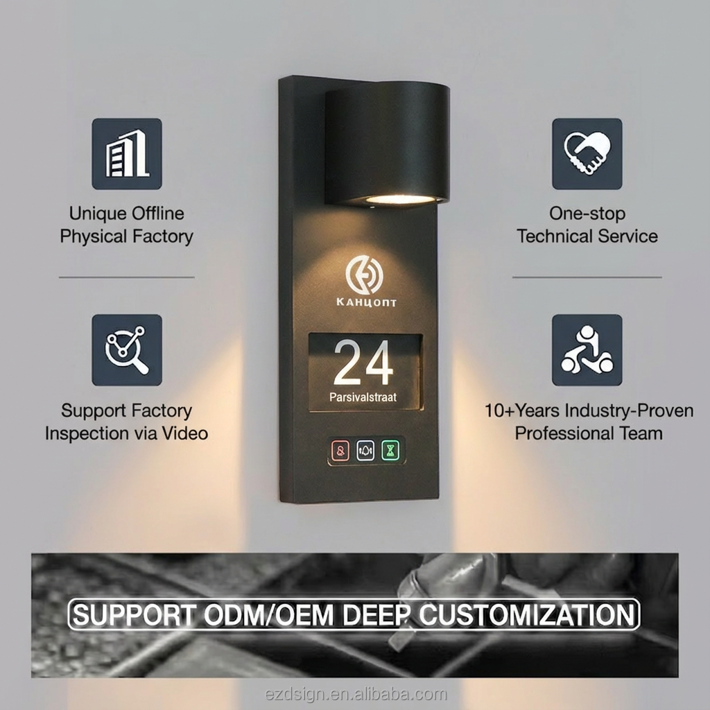 Core Functions for Hotel Needs:Equipped with touch-control DND & MUR buttons (visual + light prompts), guests can easily switch service requests; the built-in soft LED light illuminates the room number at night, enhancing guest experience while saving energy.